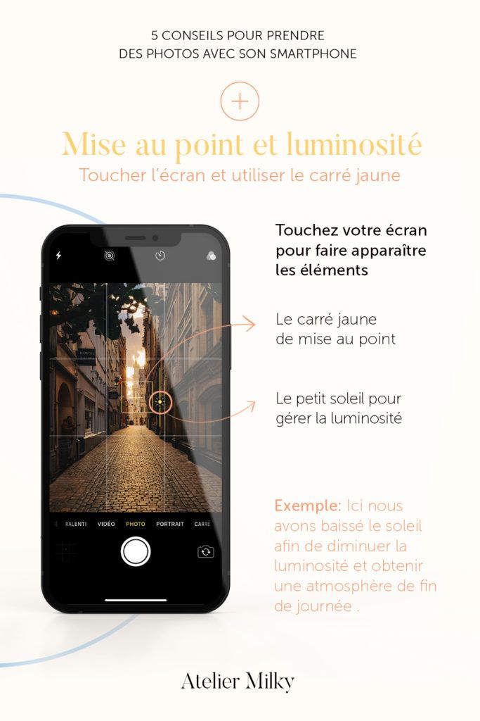 Pssst: autre petite astuce, une fois la mise au point verrouillée, glissez votre doigt vers le haut ou vers le bas pour verrouiller la luminosité selon l'intensité souhaitée!