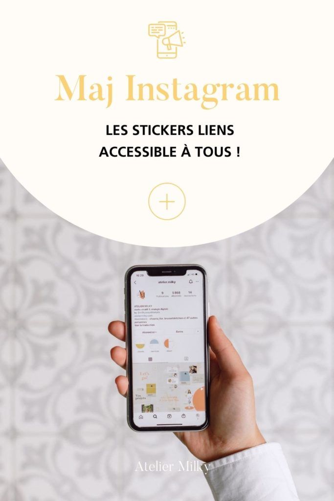 Instagram nous a fait une belle surprise ce matin : le sticker lien est désormais accessible à tous ! Avant, il était nécessaire d'avoir 10 000 abonnés pour utiliser ces fameux liens externes, mais c'est désormais de l'histoire ancienne. Atelier Milky décrypte pour vous cette nouveauté et vous partage toutes les informations nécessaires pour une bonne utilisation de ce nouveau sticker Instagram !