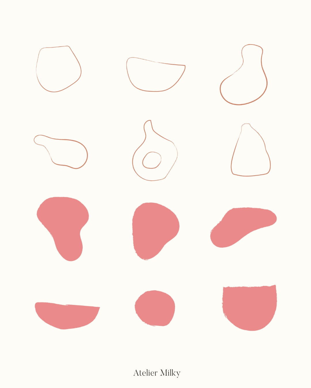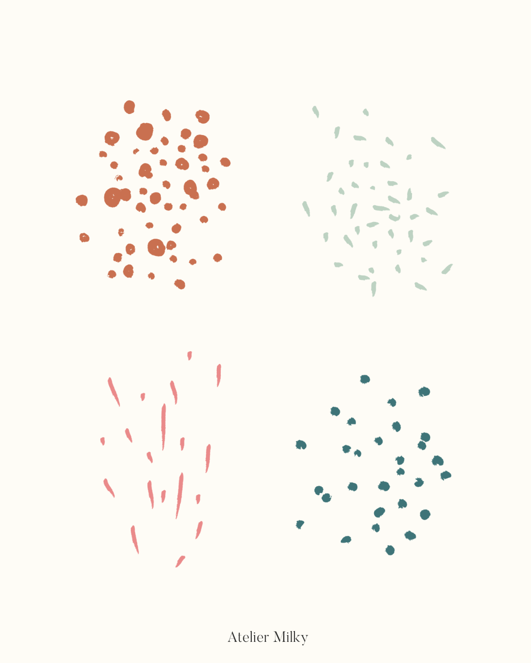 S'inspirant du moodboard fourni par notre client, notre équipe a méticuleusement élaboré un univers visuel saisissant et puissant au fil de multiples échanges avec la créatrice. Chez Atelier Milky, créer un univers qui reflète fidèlement les clients et la vision qu’ils ont de leur marque est une priorité fondamentale. À cet effet, une charte graphique complète a été conçue, englobant :